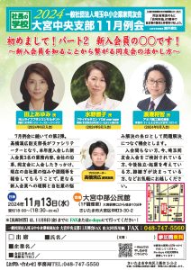 「大宮中央支部」2024年度11月例会のご案内(11/13水開催)